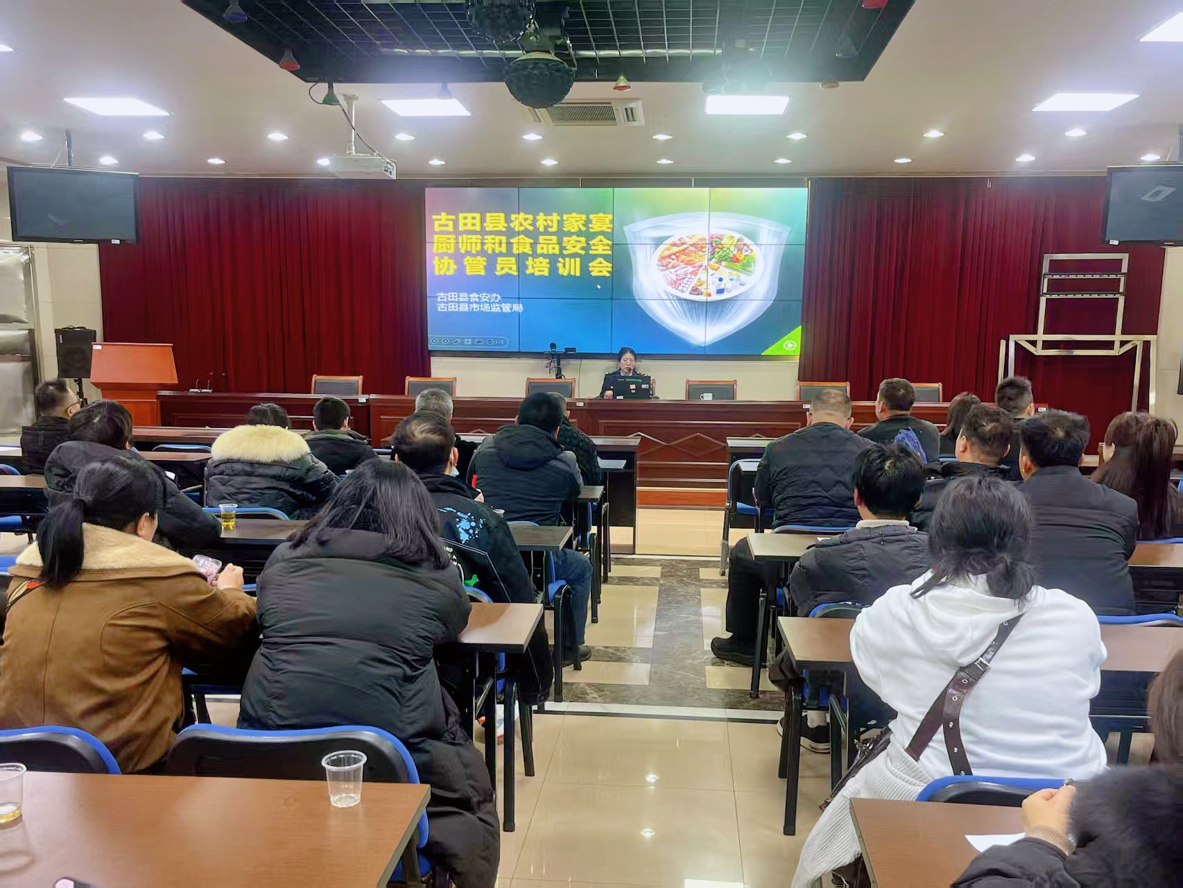 春节将至,年味渐浓,集体会餐、宴席宴请进入高峰期,为压实食物平安各方义务,规范春节期间宴席承办及农村集体会餐运营行为,发生食物平安群体性事务。近日,古田县市场监管局结合古田县食安办细心组织召开2026年春节期间宴席承办单元、农村家宴厨师食物平安约谈培训会。辖区宴席衔接单元担任人及农村集体会餐厨师、各乡镇(街道)食物平安协管员等共计75人加入培训。