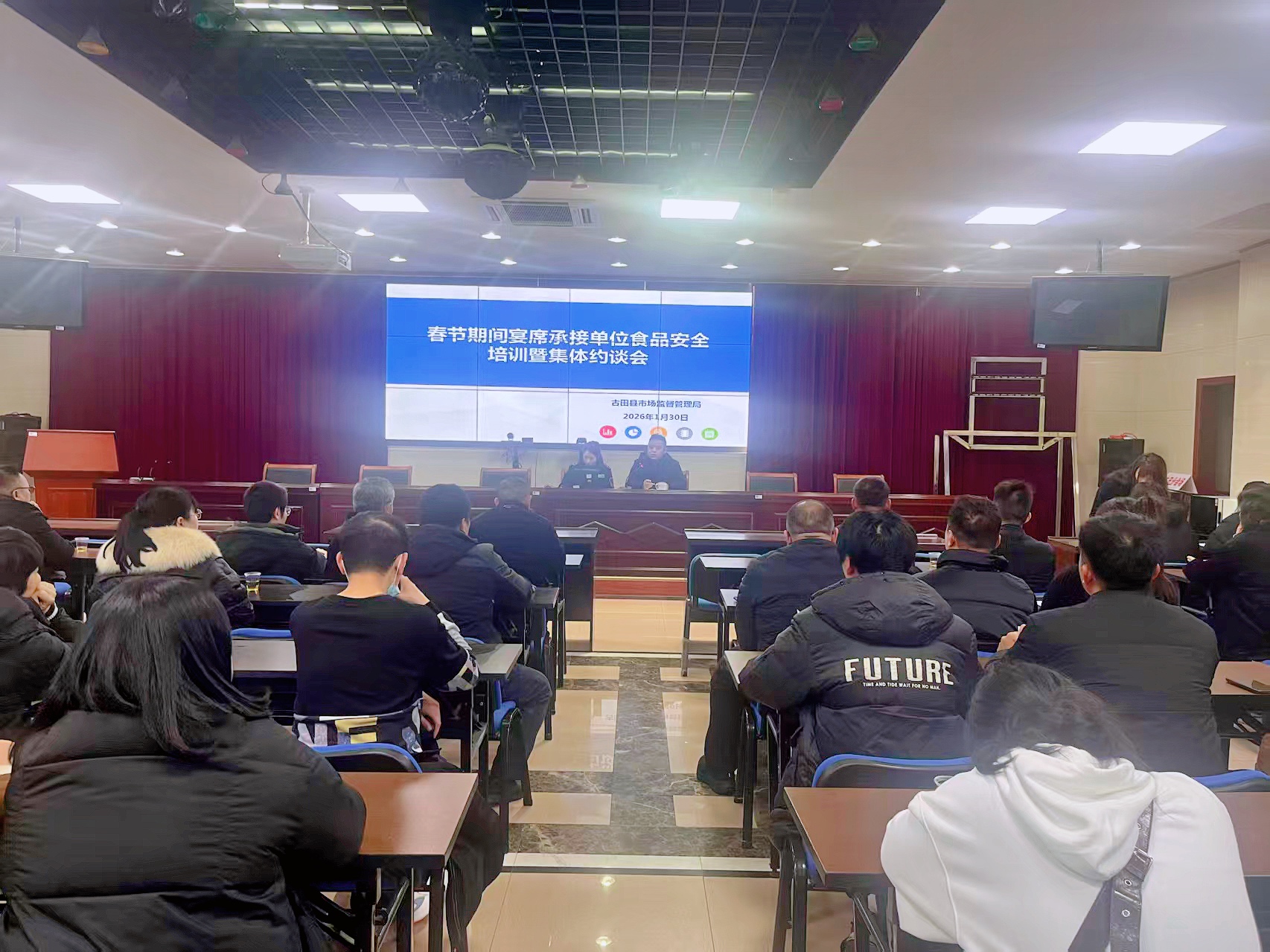 春节将至,年味渐浓,集体会餐、宴席宴请进入高峰期,为压实食物平安各方义务,规范春节期间宴席承办及农村集体会餐运营行为,发生食物平安群体性事务。近日,古田县市场监管局结合古田县食安办细心组织召开2026年春节期间宴席承办单元、农村家宴厨师食物平安约谈培训会。辖区宴席衔接单元担任人及农村集体会餐厨师、各乡镇(街道)食物平安协管员等共计75人加入培训。