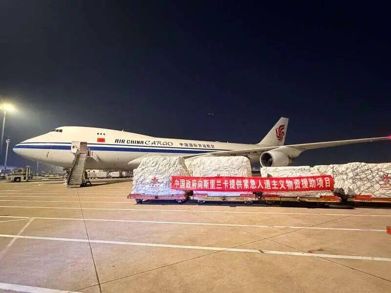 中国援帮斯里兰卡告急从义抗洪救灾物资12月8日运抵科伦坡。浮水衣、毯子等救灾物资。
